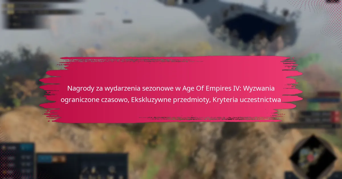 Wydarzenia sezonowe w Age of Empires IV to wyzwania ograniczone czasowo, które oferują graczom ekskluzywne nagrody i unikalne doświadczenia w grze. Te wydarzenia znacznie wzbogacają grę, wprowadzając świeże treści i cele, które różnią się od standardowej rozgrywki.